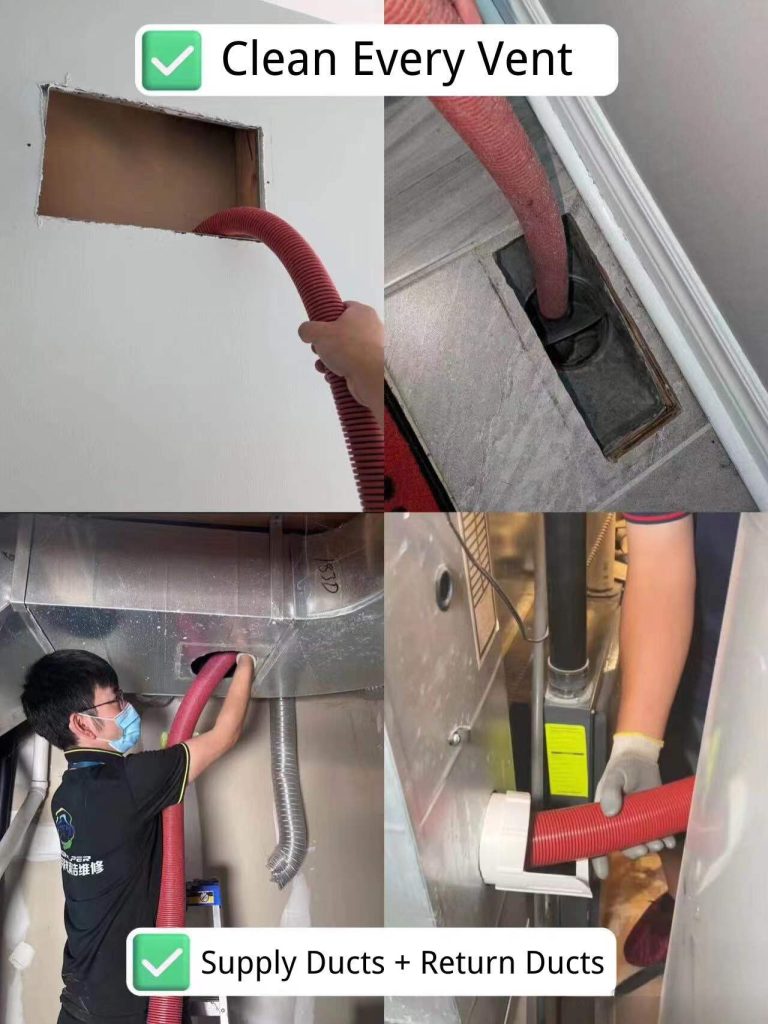 We offer professional and meticulous duct cleaning services. Our service includes rolling our equipment right to your doorstep, utilizing duct cameras to inspect the interiors, and individually cleaning each vent, return air vent, furnace, as well as the main supply and return ducts! All at an affordable price, with the guarantee of no additional charges on-site.
